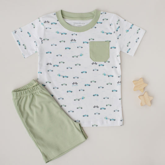 Pijama Shorts e Camiseta Canário Corrida Vintage