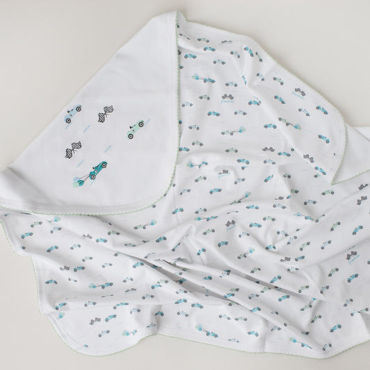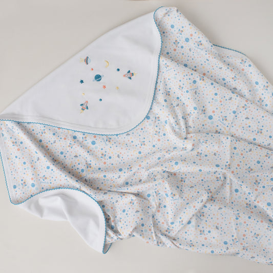 Manta Dupla Pluma de Algodão Detalhe Azul Claro