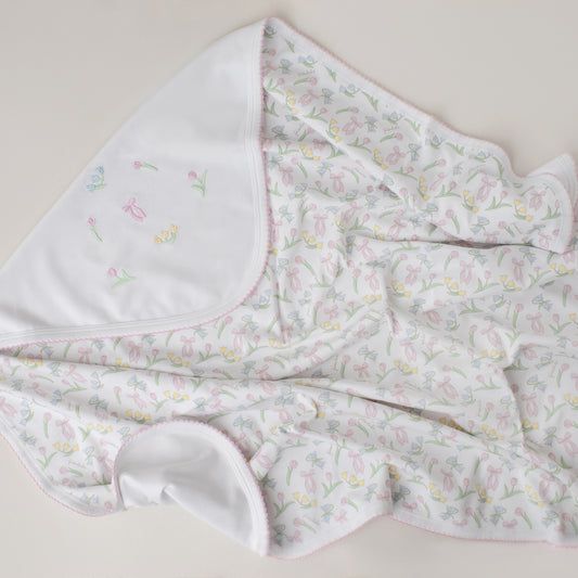 Manta Dupla Pluma de Algodão Detalhe Rosa