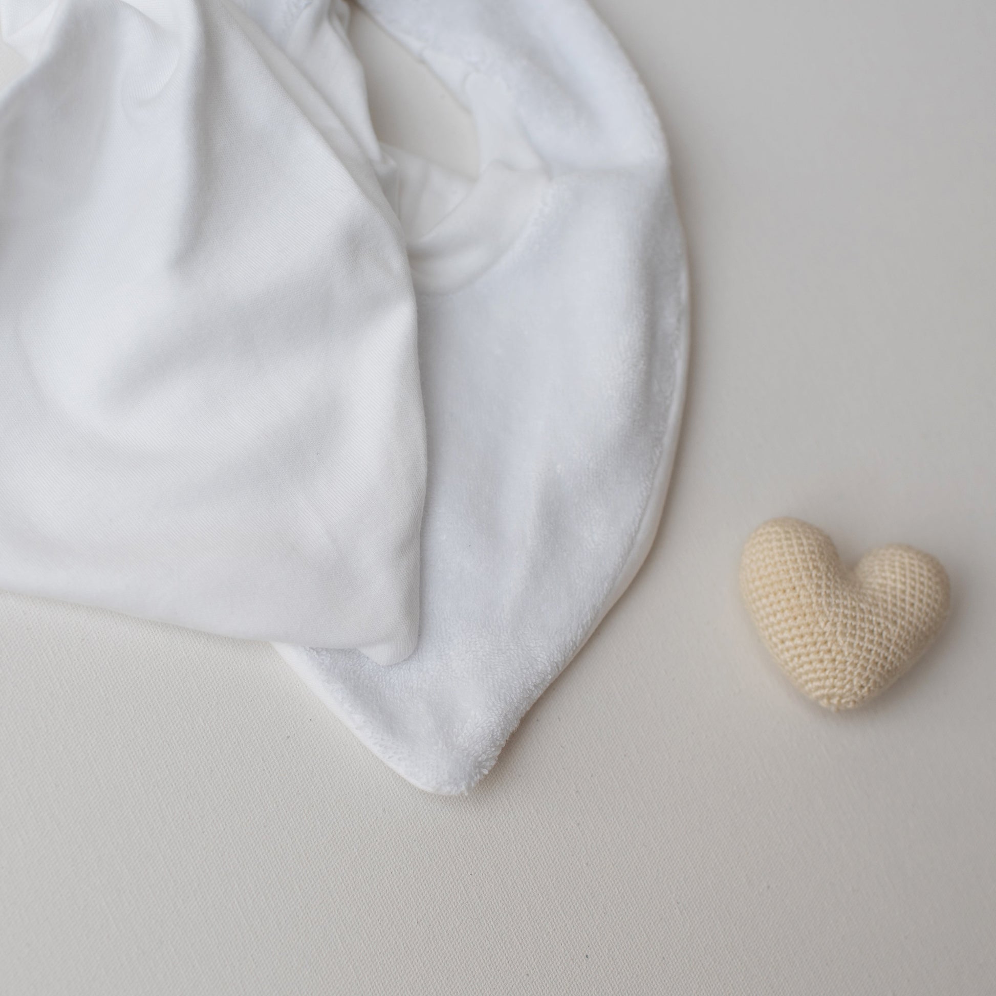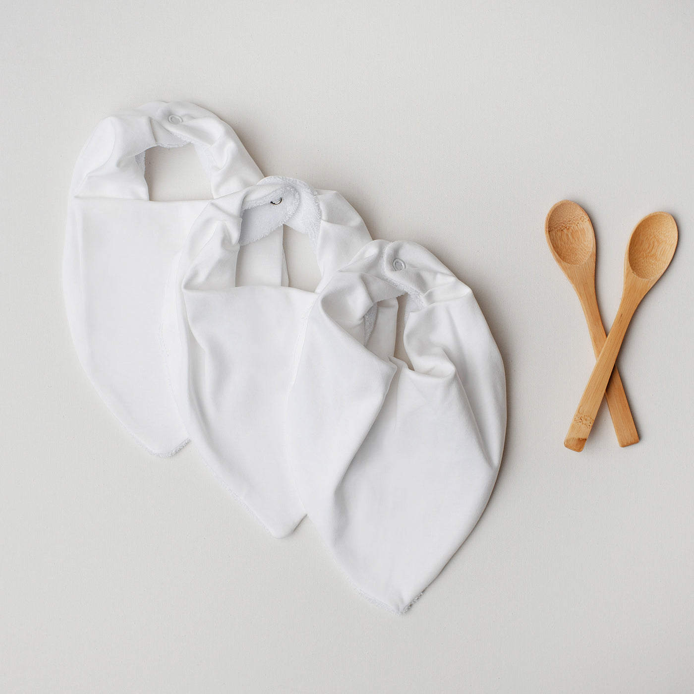 Para os bebês que salivam bastante e precisam de uma mãozinha para se manterem sequinhos, criamos nossa linha de babadores em algodão pima com o verso atoalhado. O kit possui 3 babadores.