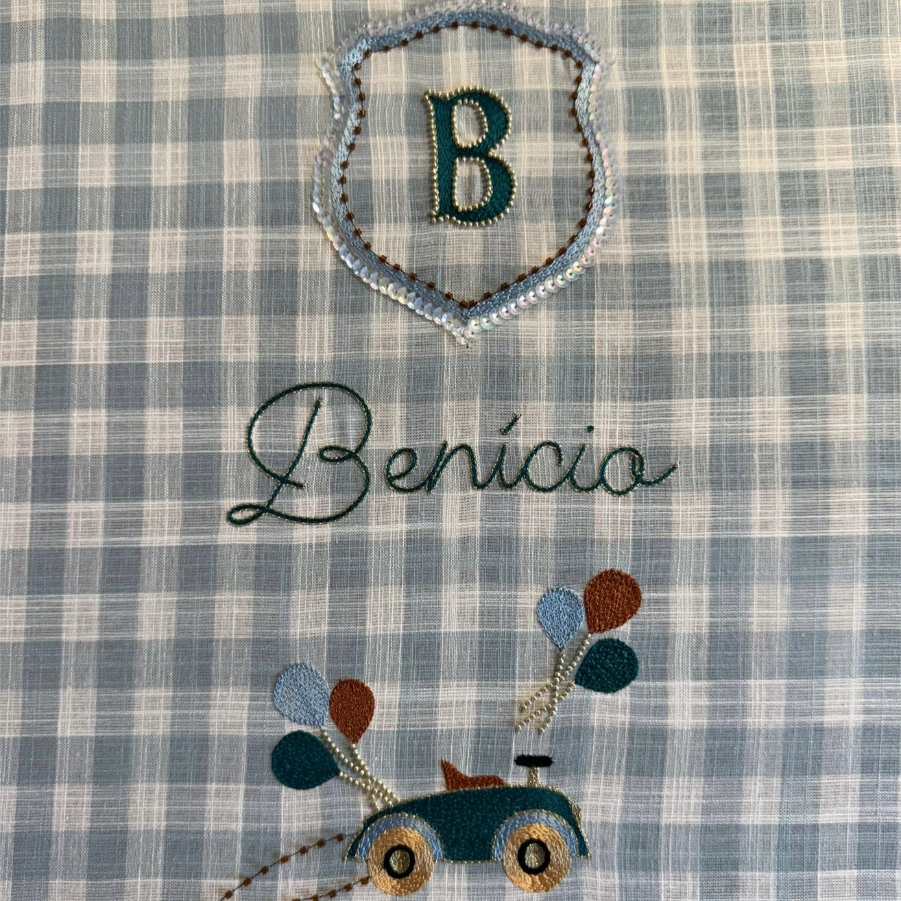 Lindo e delicado para eternizar a chegada do seu bebê com aplicação de miçangas, paetês e o uso de linhas importadas especiais.