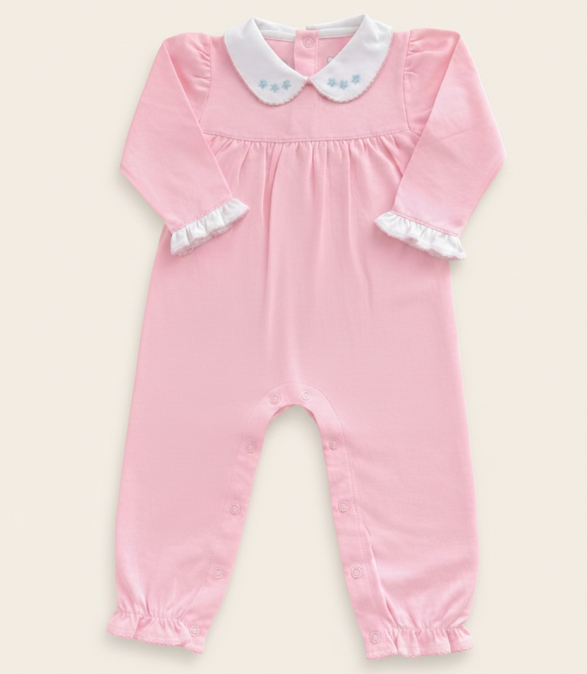 Uma noite de sono bem dormida começa com um pijama bem confortável, mas fizemos questão que esse modelo ganhasse em charme e romantismo também! Nosso macacão garça é confeccionado no algodão mais nobre, macio e suave para a pele dos bebês.