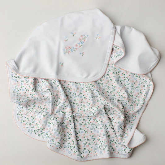 Uma toalha inacreditável! Com toda a felpa feita em 100% algodão pima e de tamanho extra-grande, nossa toalha deliciosa é perfeita para as peles mais sensíveis. Possui capuz com bordado floral em tons de rosa, azul e verde.